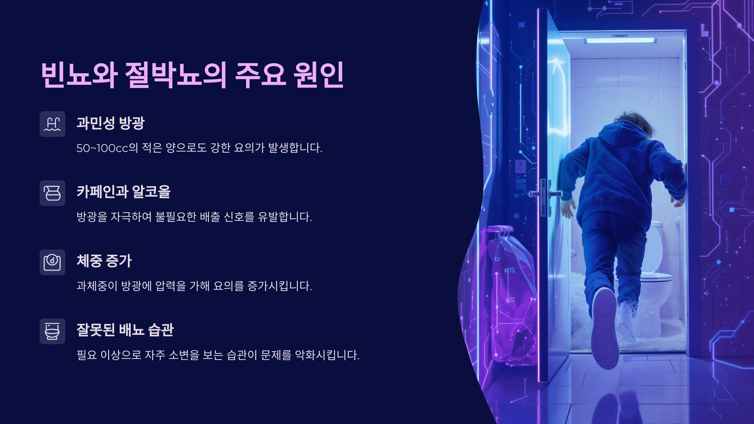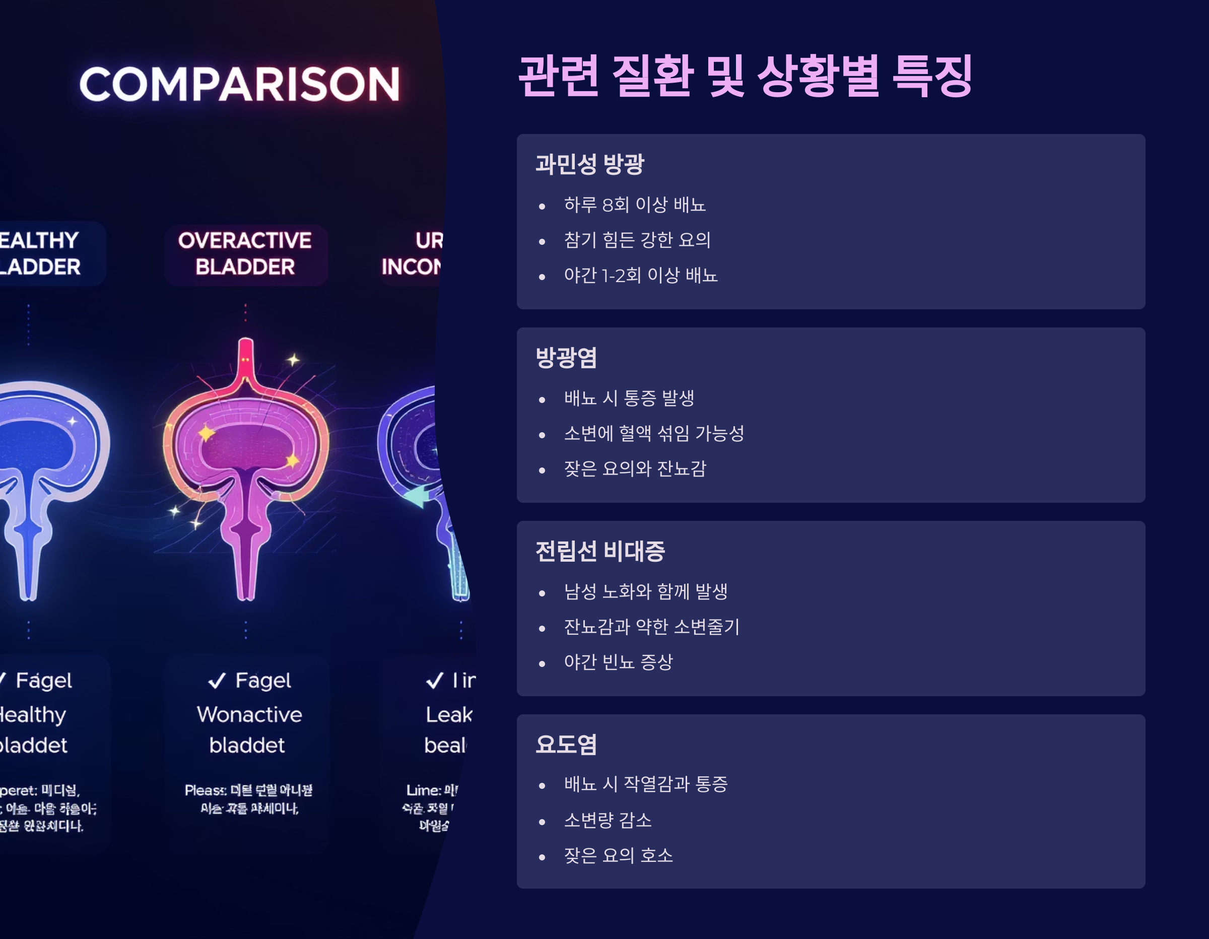 소변을 너무 자주 보거나, 참지 못해 급하게 화장실을 찾는 증상은 생각보다 많은 사람들이 겪고 있어요. 단순히 수분을 많이 마셔서일 수도 있지만, 빈뇨나 절박뇨로 분류되는 경우엔 의학적인 접근이 필요할 수도 있답니다.