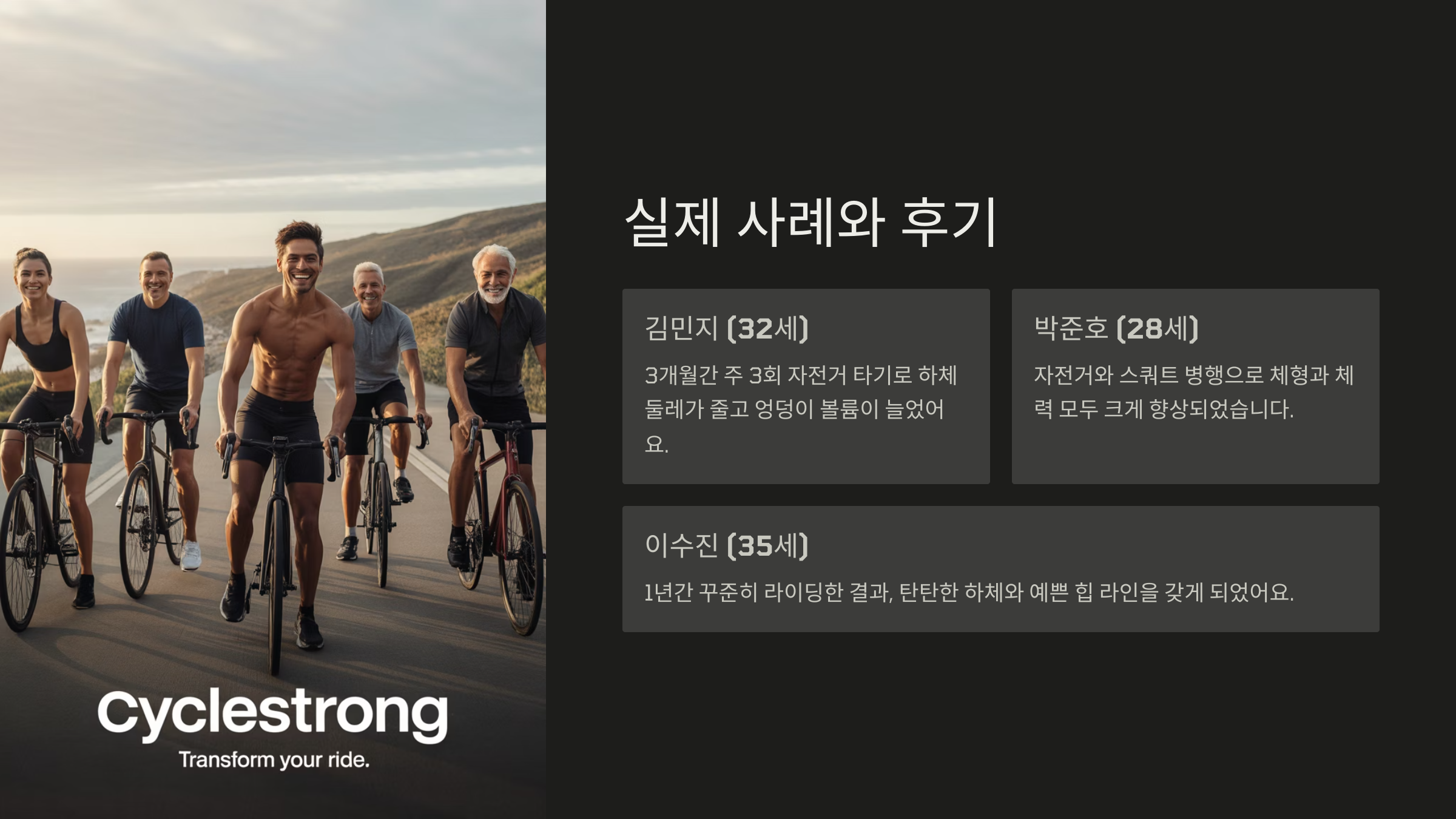 실제 피트니스 커뮤니티에서도 ‘자전거 8주 후기’ 같은 후기를 보면 엉덩이 탄력, 라인 개선, 하체 슬림 효과까지 모두 경험했다는 사람이 많아요. 효과는 확실해요!