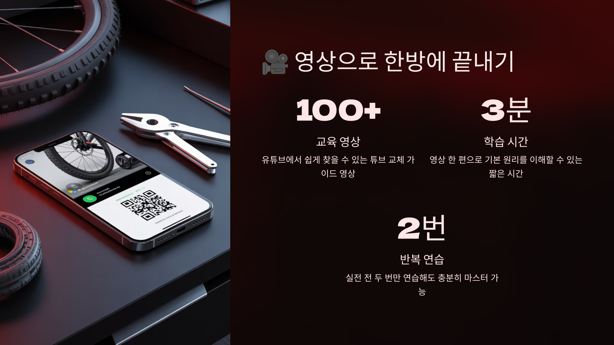 모바일로도 보기 쉽게 구성되어 있어서 야외에서 자전거가 펑크 났을 때 영상을 틀어놓고 그대로 따라 하면 바로 해결할 수 있어요. 데이터만 있으면 문제 해결 완료예요!