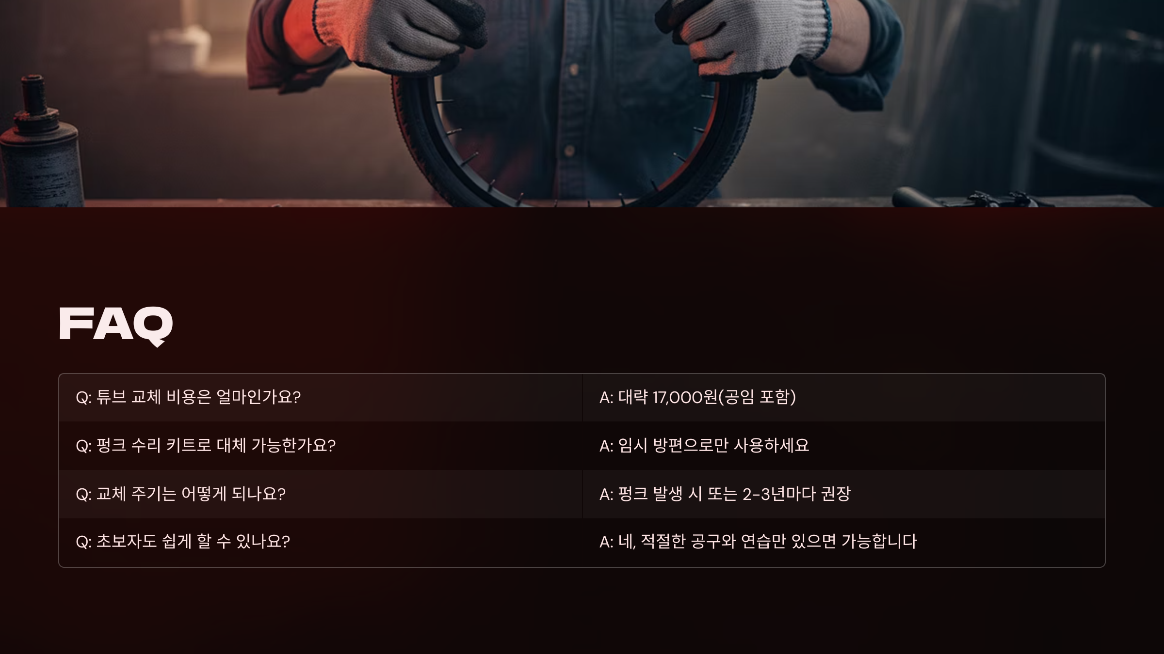 Q1. 튜브 교체 시간은 얼마나 걸리나요?A1. 숙련자 기준으로 10~15분, 초보자도 영상 보고 따라 하면 30분 이내로 끝낼 수 있어요.