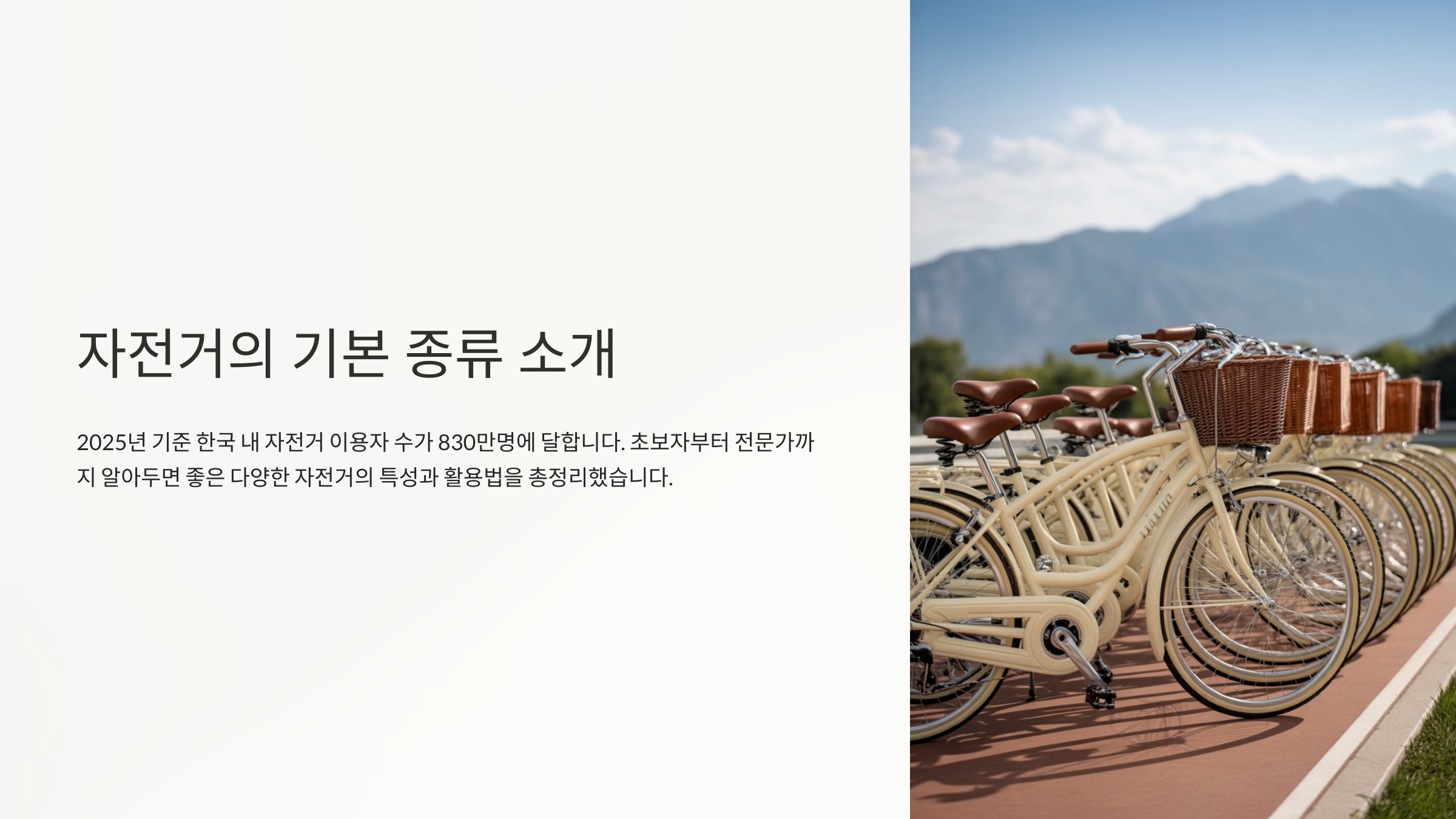 자전거는 단순한 이동 수단을 넘어 건강과 여가, 심지어는 출퇴근까지 가능한 멀티 플레이어예요. 그래서 자전거를 선택할 때 가장 중요한 건 ‘어디에 쓰느냐’에 맞춰 종류를 정하는 거예요.