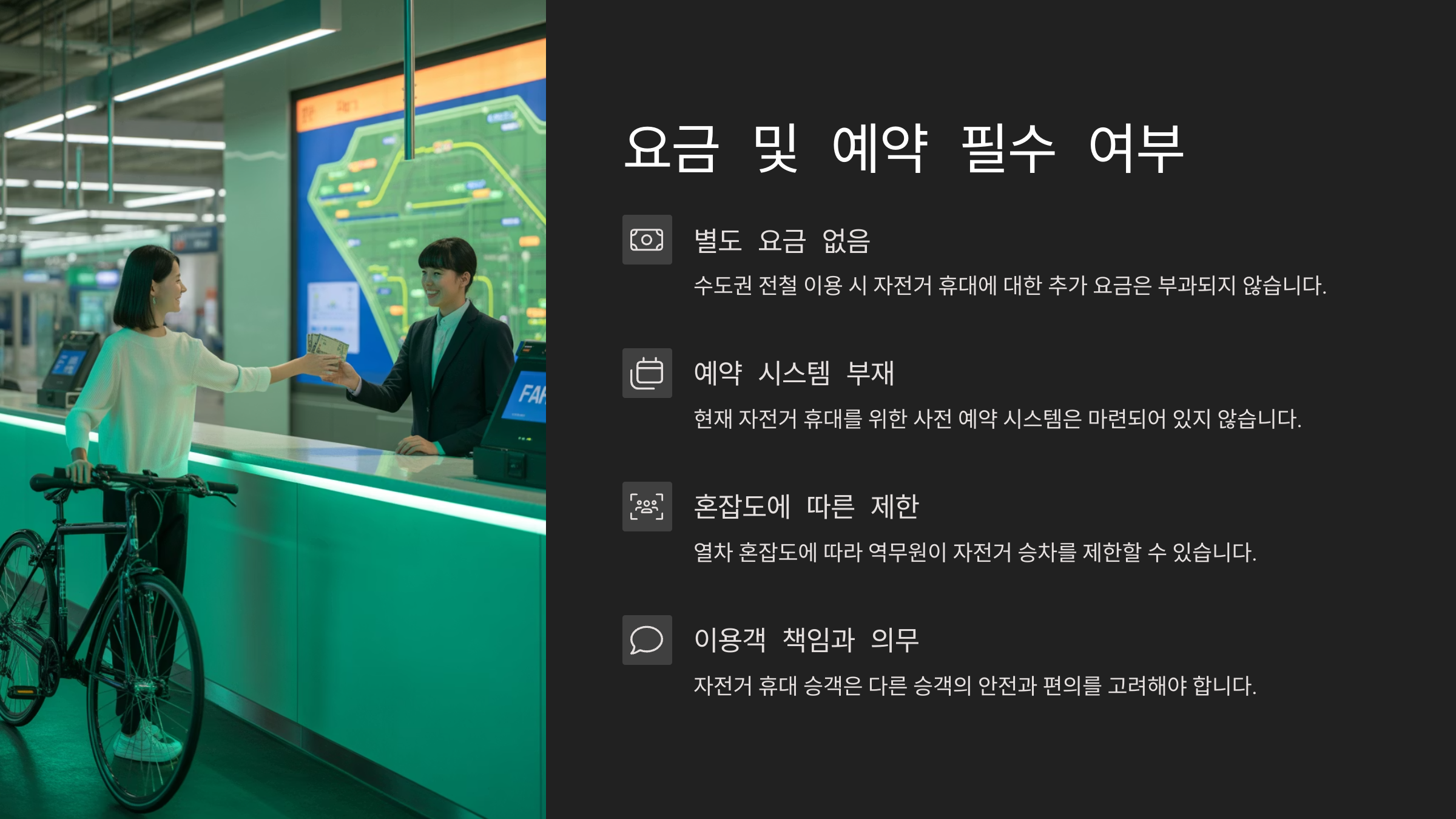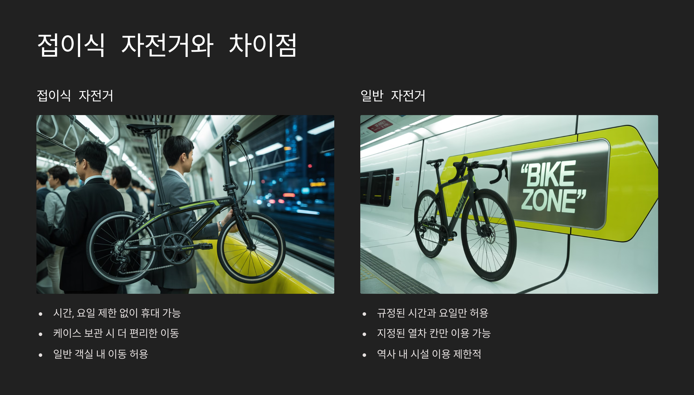 여기에 제가 생각했을 때 가장 헷갈리는 부분은 바로 ‘예약 여부’와 ‘접이식 자전거’ 차이에 대한 내용이더라고요. 실제로 혼동하는 분들이 많아서 이번 글을 통해 정확히 정리해보려 해요! 🚲