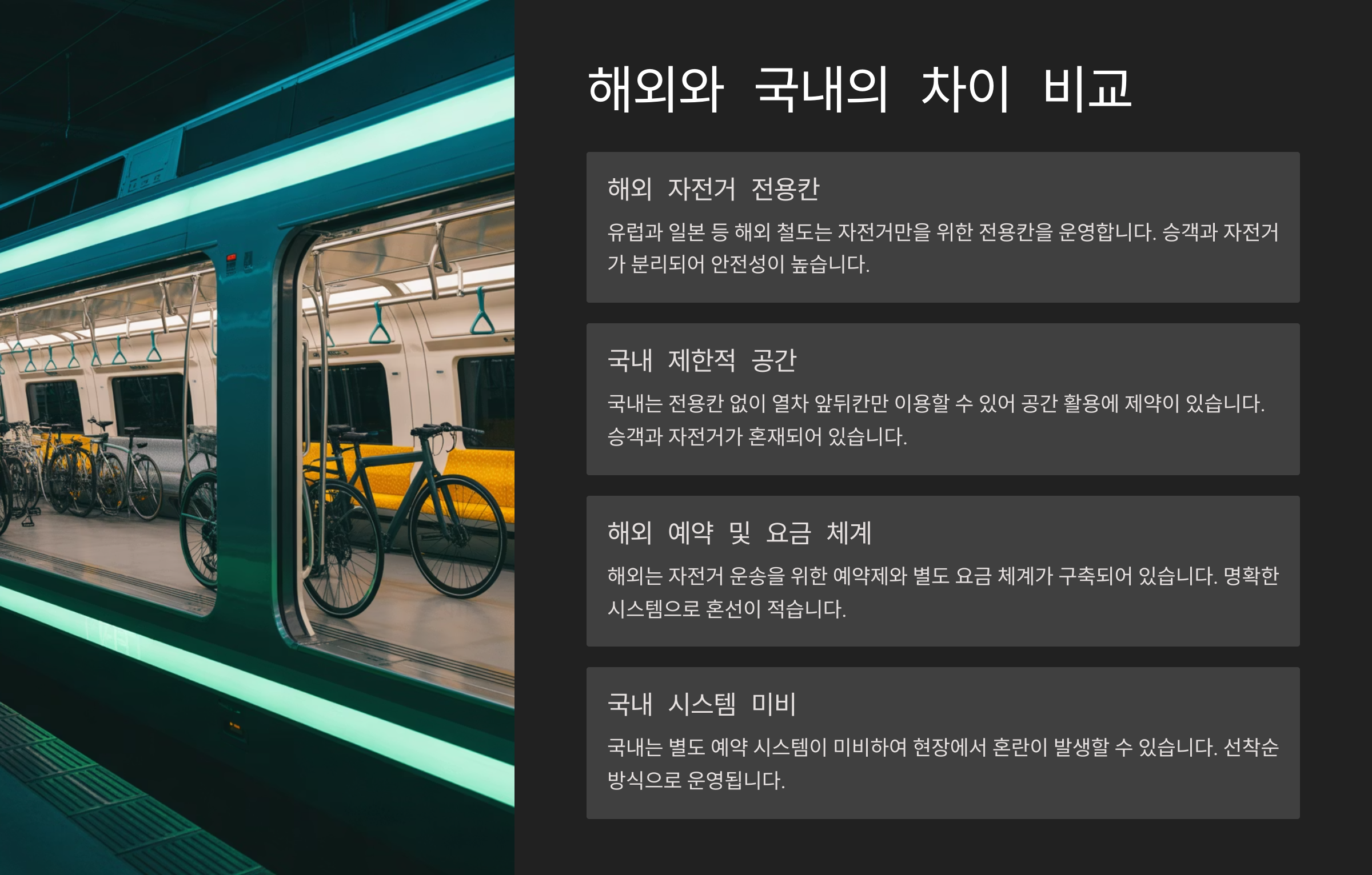 🚴♀️ 해외 자전거 열차 문화 비교표