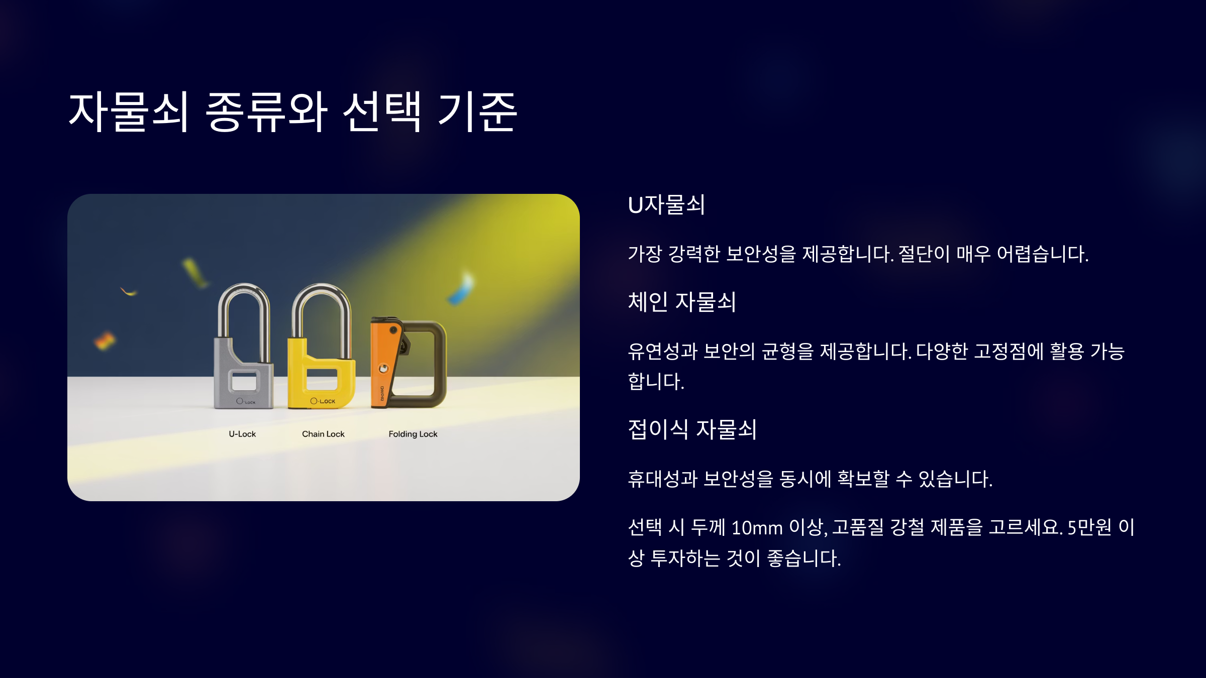 🧰 자전거 자물쇠 종류 비교표