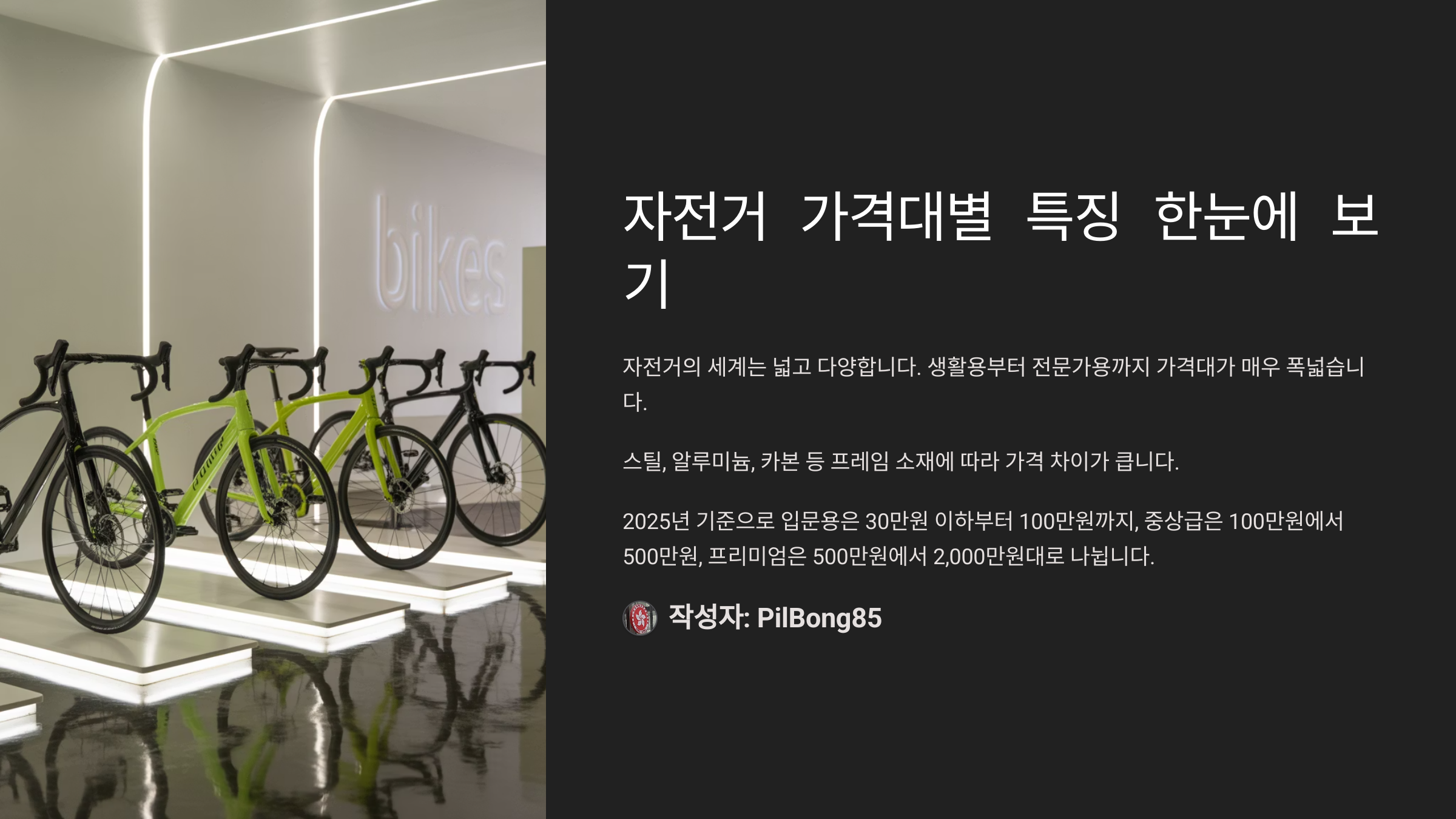 이번 글에서는 2025년 기준 예산대별 자전거 가격과 특징, 그리고 추천 모델까지 한눈에 볼 수 있도록 정리했어요. 내가 생각했을 때 자전거는 단순한 교통수단을 넘어서 삶의 질을 높여주는 동반자 같아요. 운동, 출퇴근, 취미 모두 커버 가능한 나만의 자전거, 예산에 맞춰 똑똑하게 골라볼까요?