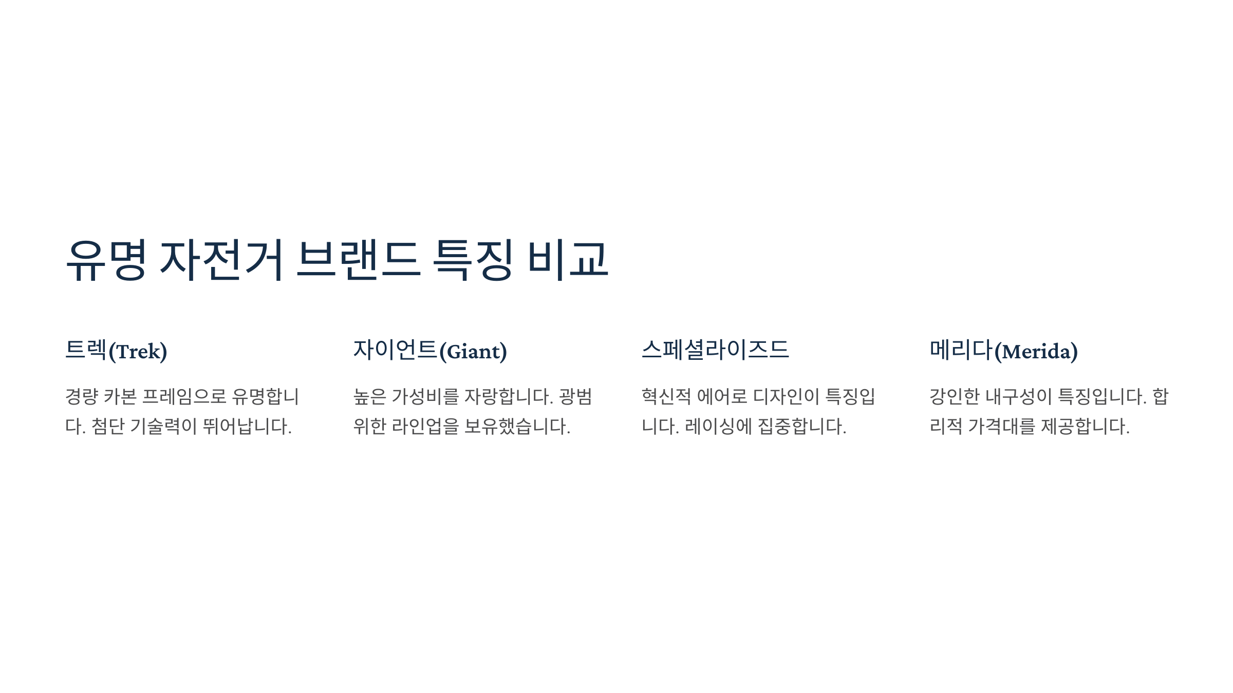 🚴 자전거 브랜드 비교표